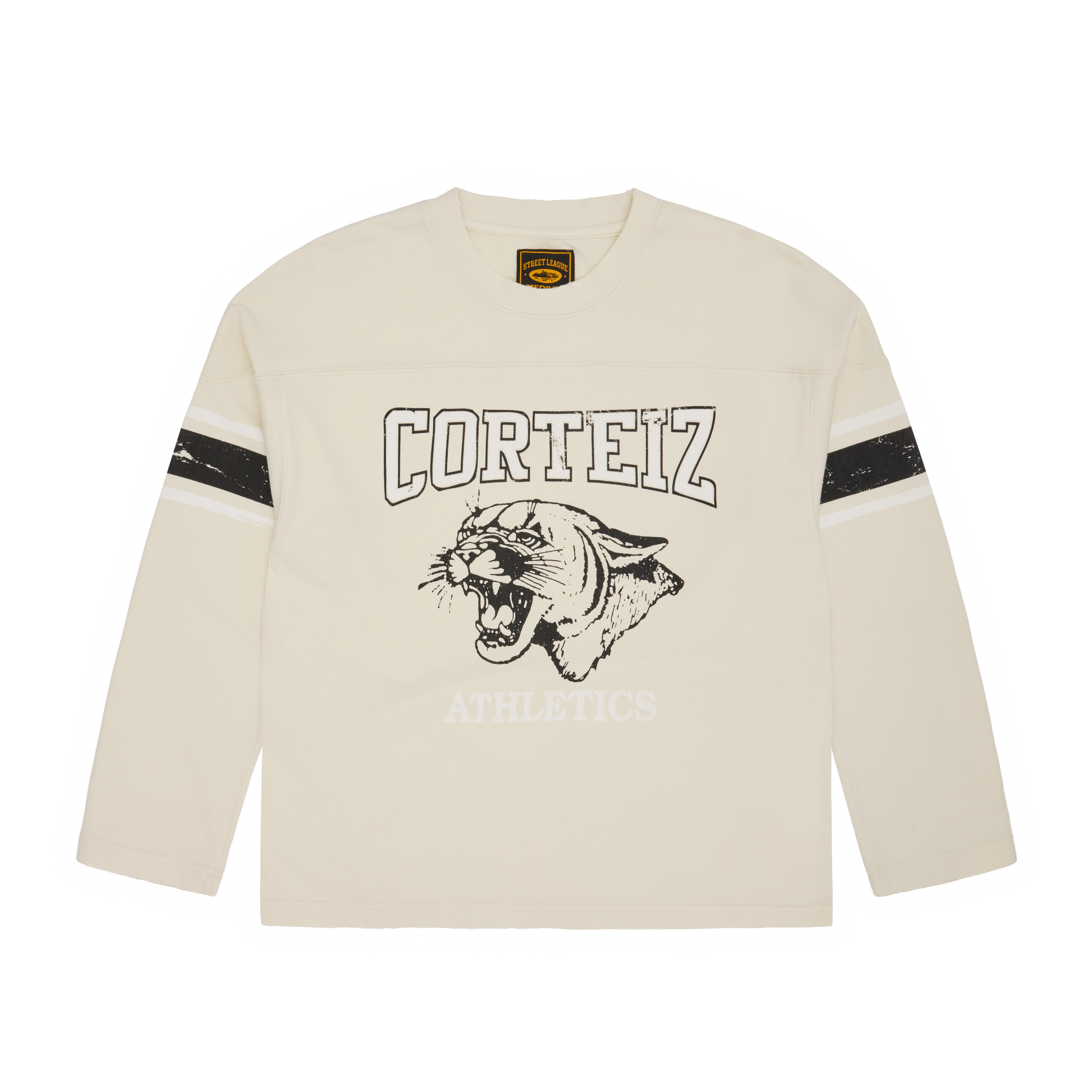 340GSM HEAVYWEIGHT COTTON. APPLIQUE CORTEIZ CHEST & BACK BRANDING. EMBROIDERED CREST LEFT CHEST. PRINTED STRIPE...