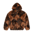 DIAMOND HOODED FUR JACKET [BROWN]